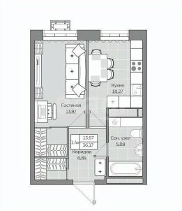 Площадь общая 36.17 кв.м., из них: