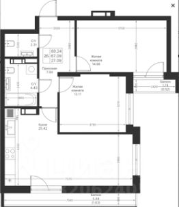 Функциональная планировка: имеются 2 спальные комнаты 15 и 12 кв.м., Кухня- гостиная площадью 25кв.м.