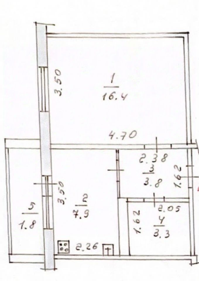 Общая площадь 31,4 м2 с лоджией. Кухня 7,9м2. Комната 16,4м2 правильной формы.