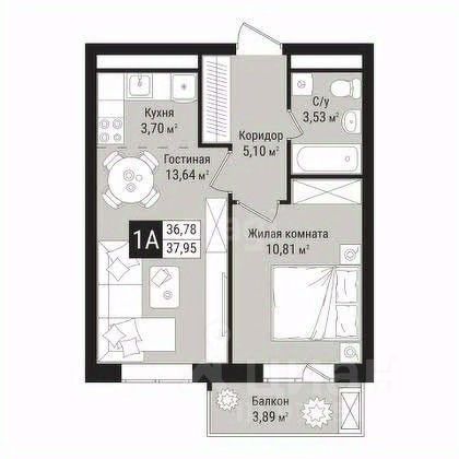 комфортная планировка позволяет вам разыграть несколько сценариев. Либо сделать евродвушку с уютной кухонной зоной и просторной гостиной, где можно не только разместить гостей на вечер, на и использовать как полноценное спальное место .