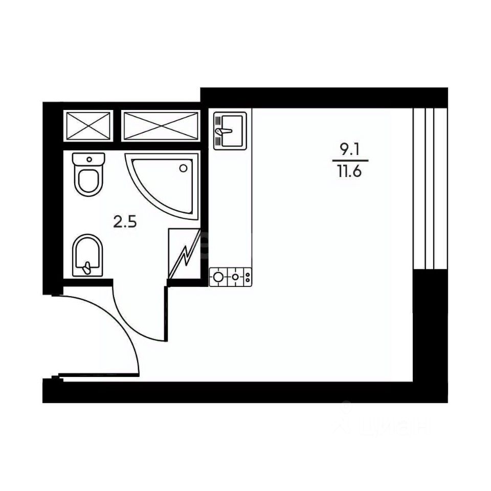 Студия полностью готова к проживанию заезжай и живи!