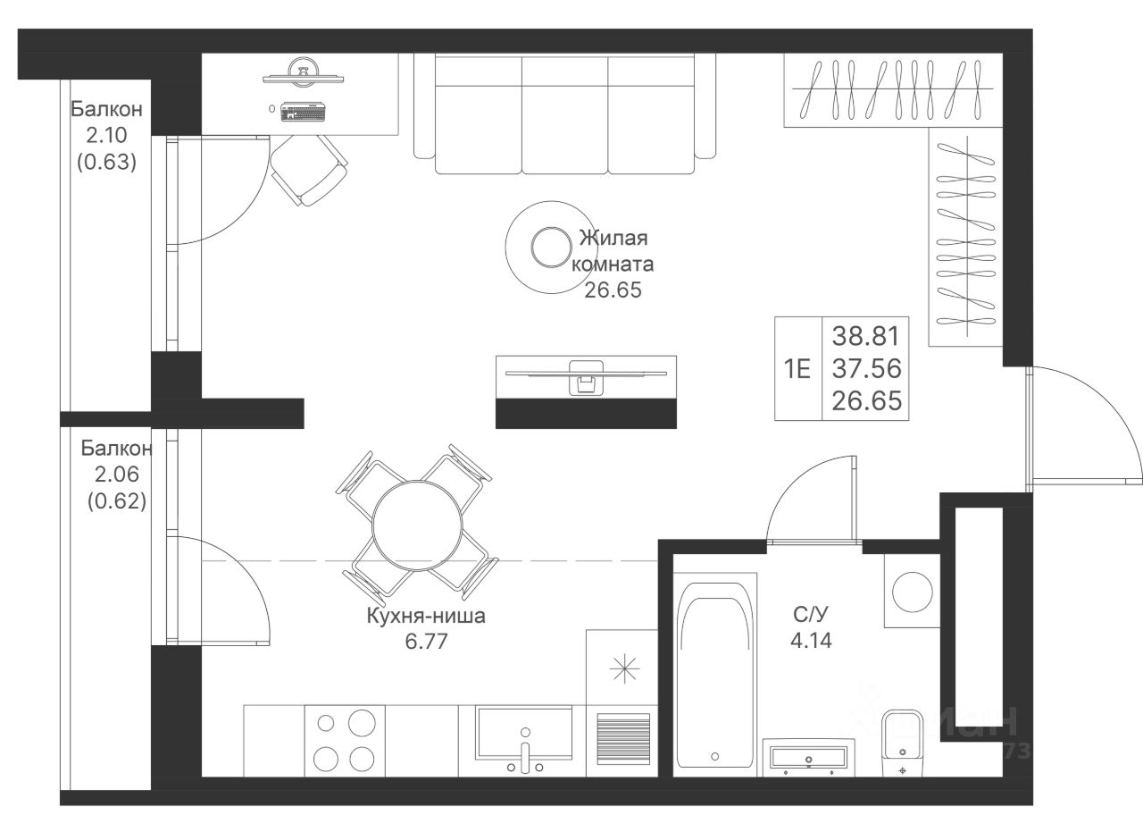 Продается студийная квартира 108 площадью 38,81 кв.м на 11 этаже в строящемся доме проекта "Мой Ритм" компании "Ак Барс Дом".