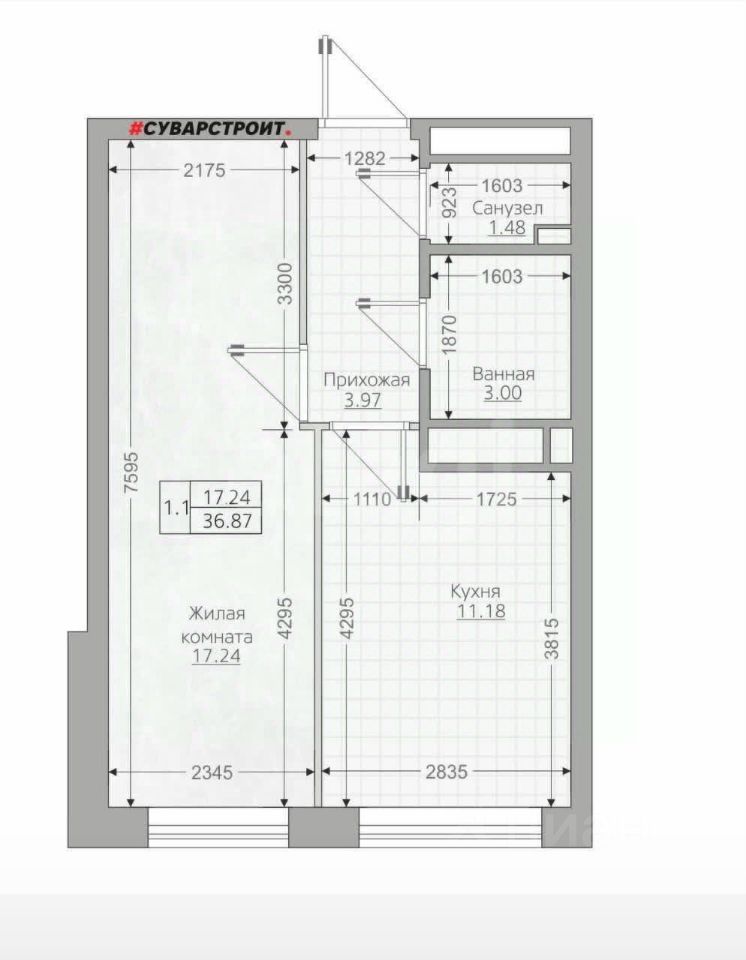 Формат квартиры позволяет с комфортом организовать пространство как полноценное жильё: просторная комната, удобная кухня, современный санузел и уютная прихожая.