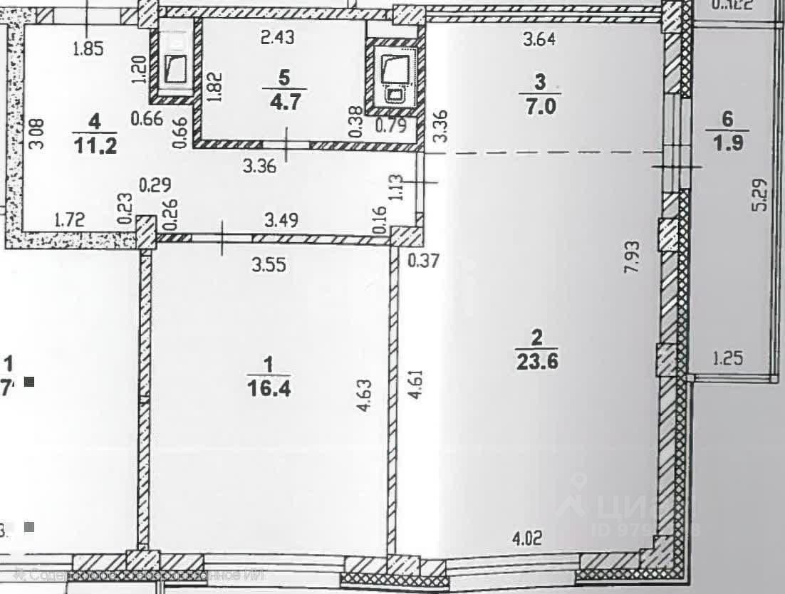 * * Просторные комнаты:* Общая площадь 64.8 м².