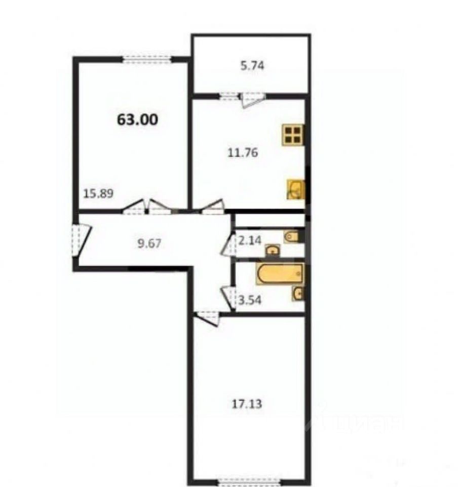 - Просторная общая площадь: 59.9 квадратных метров позволяет удобно разместить всю необходимую мебель и создать комфортные условия жизни.
