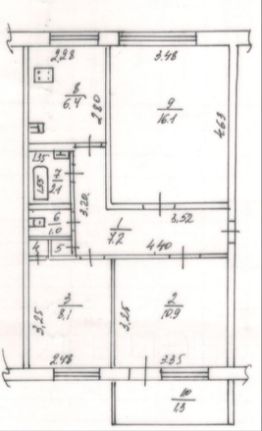 Общая площадь 52, 5 кв.м