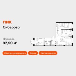 Продаётся 3-комн. квартира площадью 92,9 кв.м на 6 этаже 16 этажного дома (Корпус 3, Секция 7) проекта ПИК Сиберово. Светлый просторный подъезд на уровне земли, функциональная планировка, большие окна, предчистовая отделка.