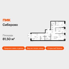 Продаётся 3-комн. квартира площадью 81,5 кв.м на 3 этаже 26 этажного дома (Корпус 3, Секция 6) проекта ПИК Сиберово. Светлый просторный подъезд на уровне земли, функциональная планировка, большие окна, предчистовая отделка.