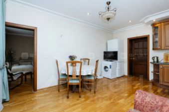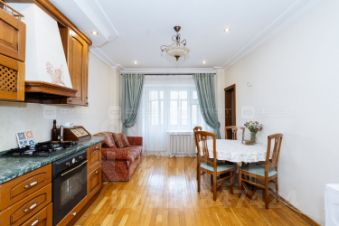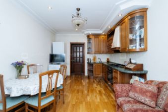 Общая площадь квартиры — 112,2 м², жилая — 72,3 м², просторная кухня — 15 м². В квартире есть вся необходимая мебель и техника для комфортного проживания — кухонная мебель, встроенная техника, а также есть гардеробная, которую можно обустроить под свои нужды.
