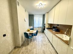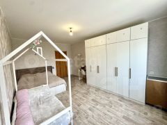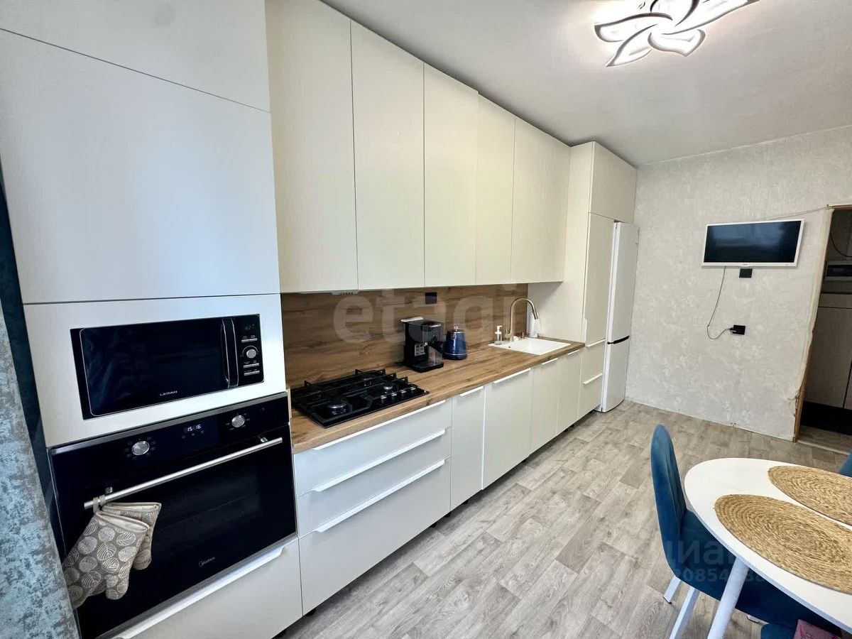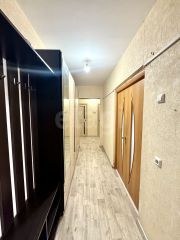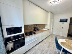 Продается просторная трехкомнатная квартира площадью 76,4 кв.м. на пятом этаже дома 2012 года постройки. Квартира в отличном состоянии, с продуманной планировкой типа "распашонка" — окна выходят на обе стороны, обеспечивая естественный свет и хорошую проветриваемость. В квартире установлены пластиковые окна, стены оклеены светлыми обоями, полы во всех комнатах покрыты качественным линолеумом. Кухня оборудована новым гарнитуром с полным набором встроенной техники: посудомоечная машина, варочная панель, духовой шкаф, вытяжка, микроволновая печь и холодильник. Санузел раздельный, с кафельной плиткой на полу. Из гостиной есть выход на балкон, дополнительно предусмотрены места для хранения.