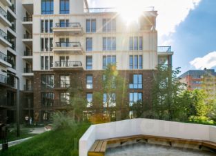 Комфорт и безопасность. Дом построен на стилобате (искусственном основании), что обеспечивает дополнительную шумоизоляцию и безопасность. Зеленый двор на уровне 2-го этажа, где разбита уютная озелененная территория с современной детской площадкой и зоной отдыха для жителей. Идеально для семей и любителей свежего воздуха без выхода на оживленную улицу.