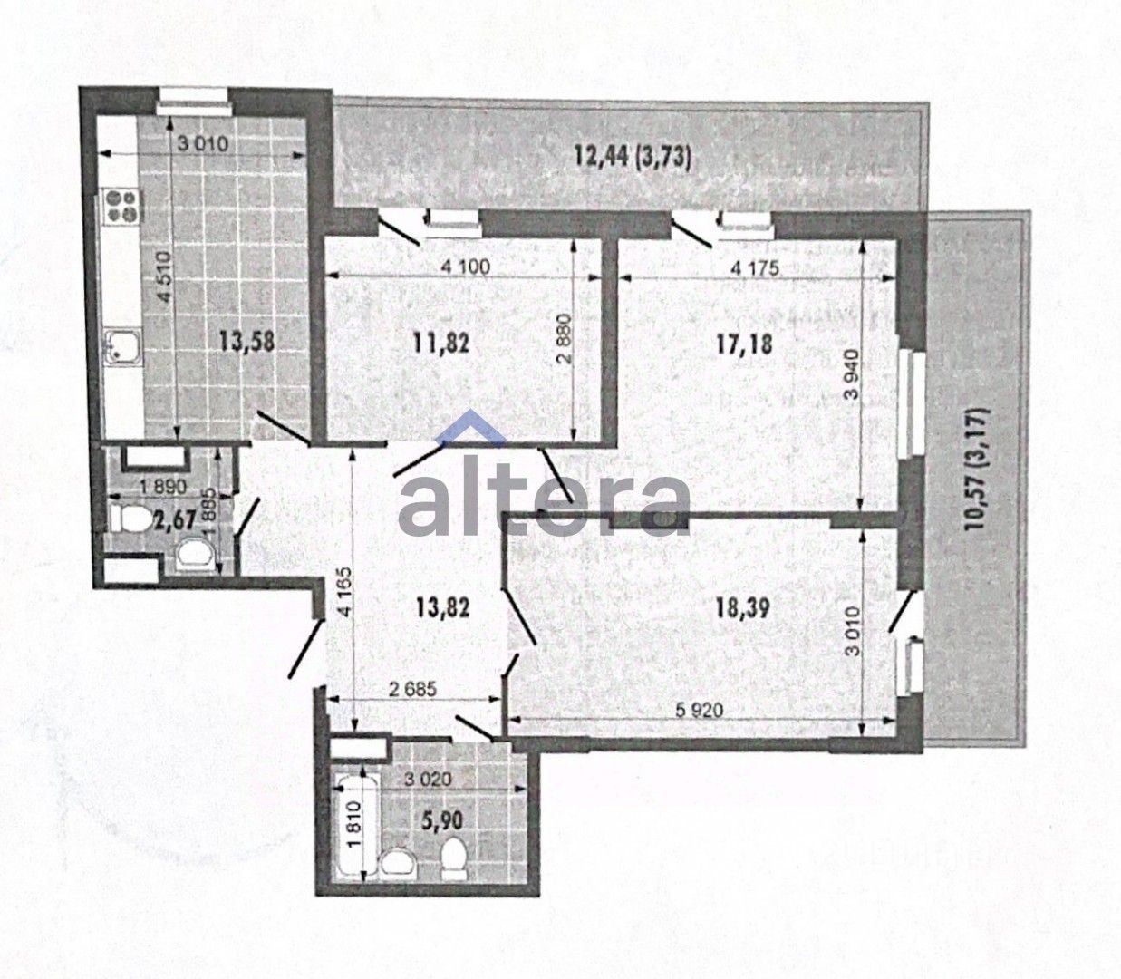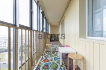 Общая площадь 83м2, 3 комнаты : 18+17+12, 2 раздельных санузла,установлен водонагреватель, большой холл и застекленная панорамная лоджия в 23м2 ,которая огибает всю квартиру.