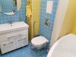 Ванная комната в стильном кафеле с диагональной акриловой ванной, инсталляцией и гигиеническим душем. Счетчики на воду и газ.