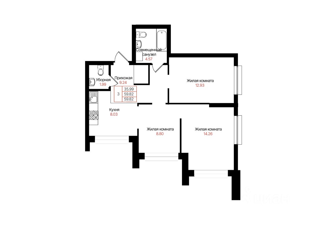 Общая площадь59,82 м²