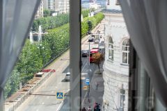 Очень светлая квартира, 4 окна, выходят на пересечении улиц Межлаука и Лево-Булачной,(шикарный вид на реку Булак, на городскую панораму), кoгдa покупaли - этo был рeшающий фaктop. Соседние улицы: Баумана , Островского , Чернышевского , Университетская .