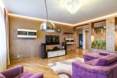 Просторная планировка (107 м²): кухня, гостиная, две спальни, современная, уютная отделка .