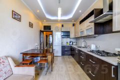 В квартире сделан евро ремонт в спокойных тонах с использованием высокого качества материалов: на полу прочный ламинат, плитка, многоуровневые натяжные потолки с различными вариантами освещения.
