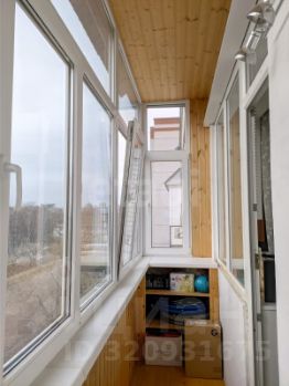 На балконе 2-метровые окна со стеклопакетами с защитой от ультрафиолета. Длина балкона 5,7 метров, обшит светлым деревом, есть полки для хранения. Выходы на балкон из кухни и зала.