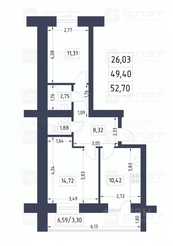 26 м²
