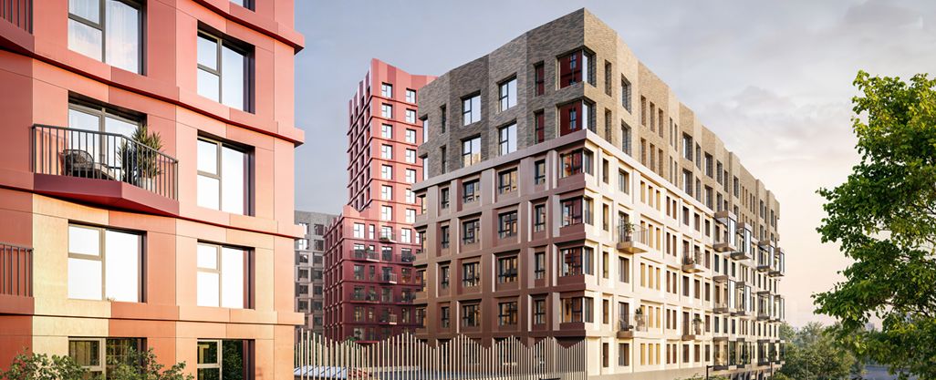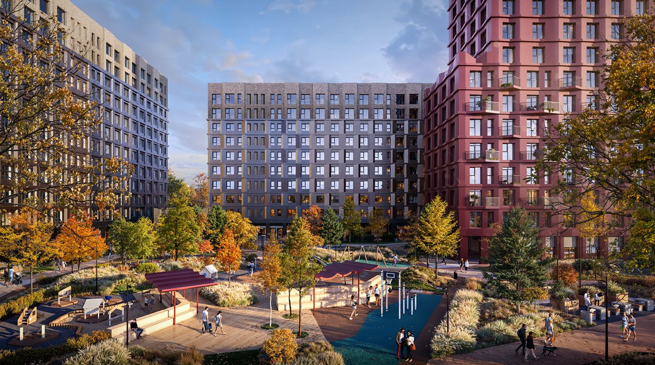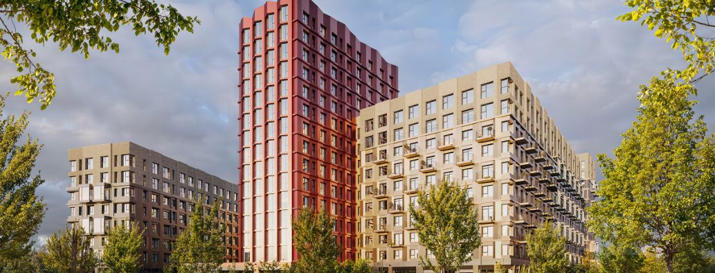 Дома разной высоты выполнены в природных тонах, а на фасаде со стороны улицы Шаляпина появится арт-объект, который дополнит эстетический образ квартала.