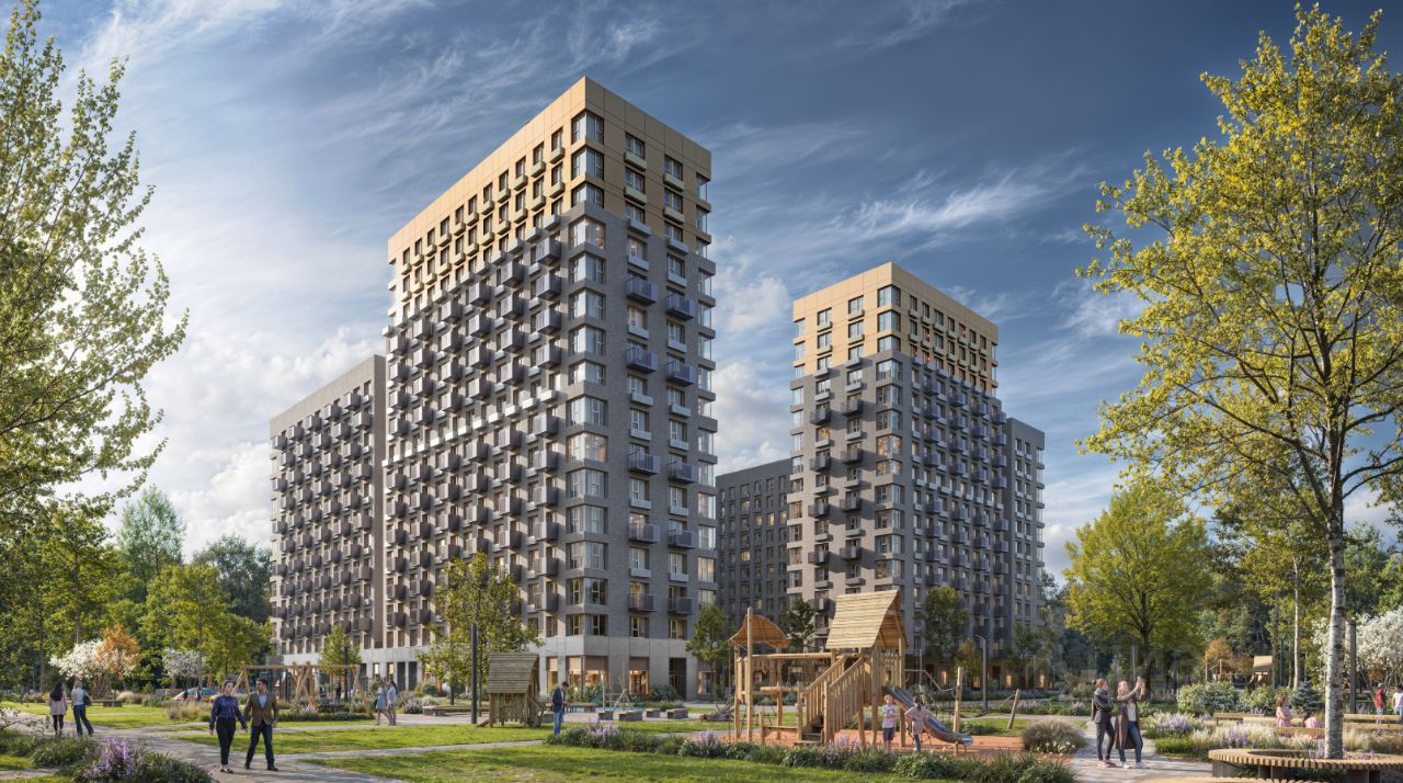 Жилой квартал спроектирован так, чтобы в каждую квартиру и во дворы попадало как можно больше солнечного света. Во дворах-парках не будет машин: для них мы построим подземные и наземные многоуровневые паркинги. Ещё на территории жилого квартала откроется школа и два детских сада.