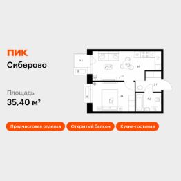 Продаётся 1-комн. квартира площадью 35,4 кв.м на 8 этаже 16 этажного дома (Корпус 3, Секция 1) проекта ПИК Сиберово. Светлый просторный подъезд на уровне земли, функциональная планировка, большие окна, предчистовая отделка.
