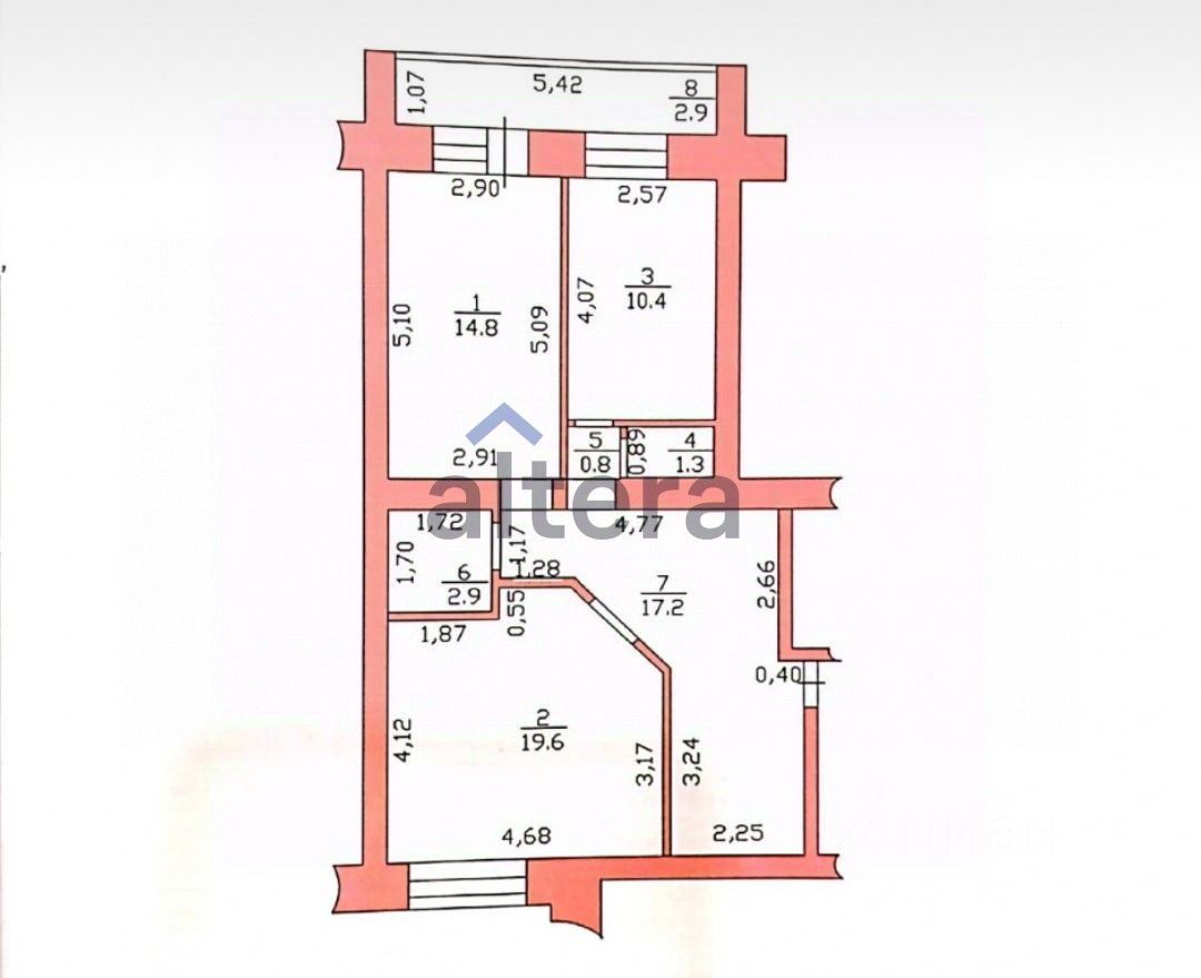 Жилая площадь: 34,4м2 (19,6+14,8)