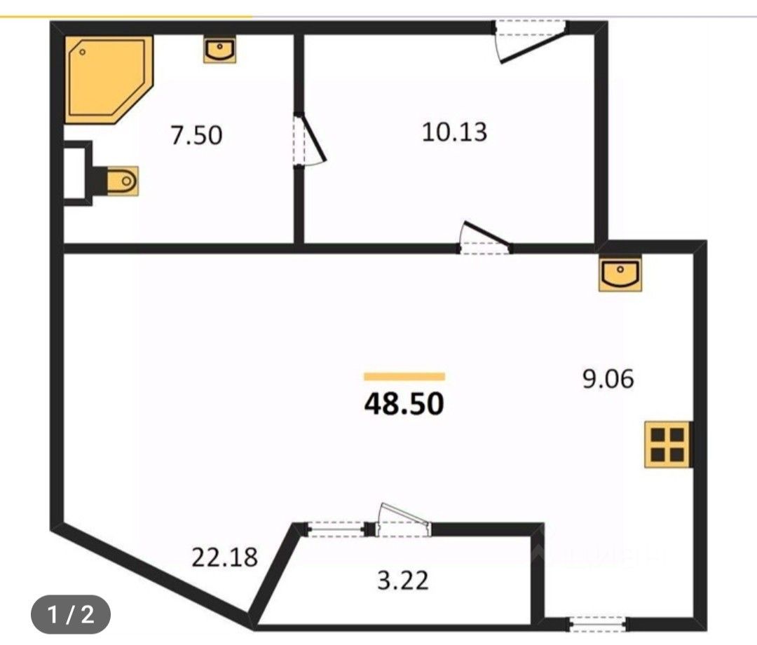 Арт. 114361143 Продается 1 -к квартиру на ул. Чистопольская, д. 88, в Ново-Савиновском районе г. Казани. 50 м2, ЖК Столичный.