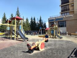 Закрытый, зеленый двор с детской площадкой и парковкой для гостей.