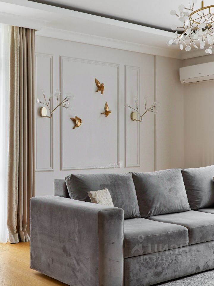 Просторная гостиная объединена с кухней. Три французских окна в пол, с выходом на лоджию и на террасу.