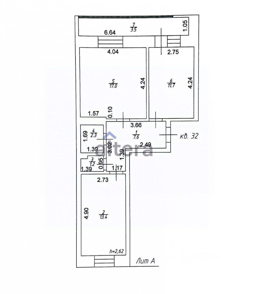 комнаты просторные, правильной формы- 17 и 13 квадратных метров, кухня 11,7 квадратов