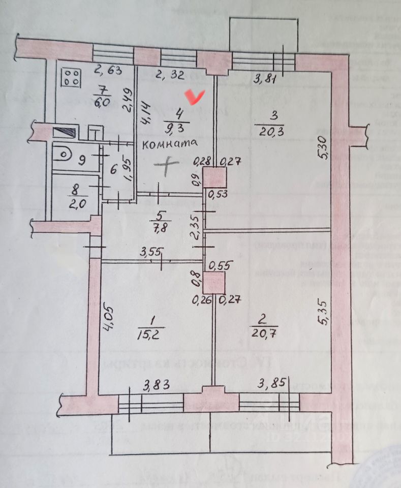 Площадь комнаты 9,3 м² (в совместном пользовании-кухня, ванная, туалет, коридор, прихожая - делимые на 4-х собственников).