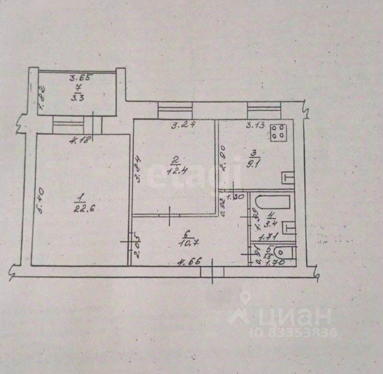 **Просторные изолированные комнаты** (зал 22.6 м² и спальня 12,4 м²) с выходом на **удобный лоджию** идеально для отдыха и хранения вещей.