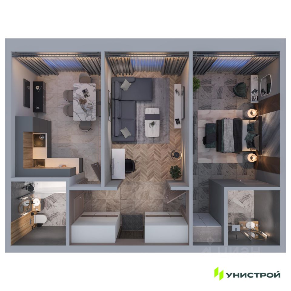 В доме представлен широкий выбор планировок: квартиры с просторными террасами, пентхаусы, мастер-спальнями с личными ванными и гардеробными, угловыми окнами и продуманной геометрией света. Также в проекте — форматы 3-, 4- и 5-комнатных квартир.