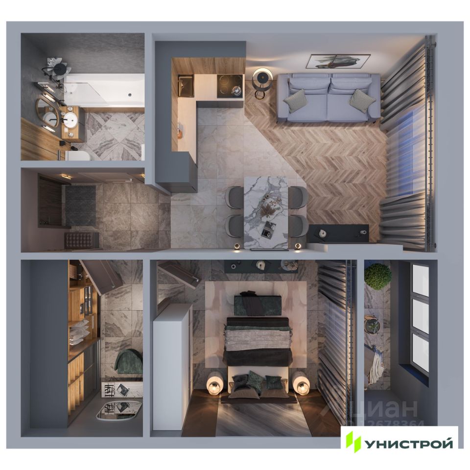 В доме представлен широкий выбор планировок: квартиры с просторными террасами, пентхаусы, мастер-спальнями с личными ванными и гардеробными, угловыми окнами и продуманной геометрией света. Также в проекте — форматы 3-, 4- и 5-комнатных квартир.