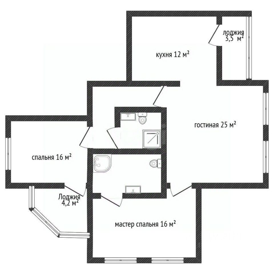 2 отдельные спальни, кухня и большая гостиная — личное пространство для каждого члена семьи