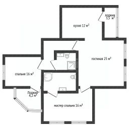 Удобная планировка распашонка — окна выходят на разные стороны дома, обеспечивая отличную циркуляцию воздуха и максимум света в течение дня.