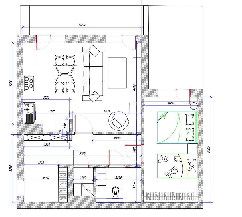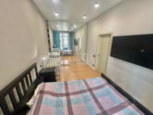 Эта квартира отличается продуманной планировкой, которая разделяет пространство на две полноценные зоны: уютную спальню и светлую кухню-гостиную, обеспечивая максимальное удобство и функциональность.