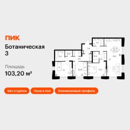 Продаётся 3-комн. квартира площадью 103,2 кв.м на 10 этаже 15 этажного дома (Корпус 2, Секция 9) проекта ПИК Ботаническая 3. Светлый просторный подъезд на уровне земли, функциональная планировка, большие окна, без отделки.