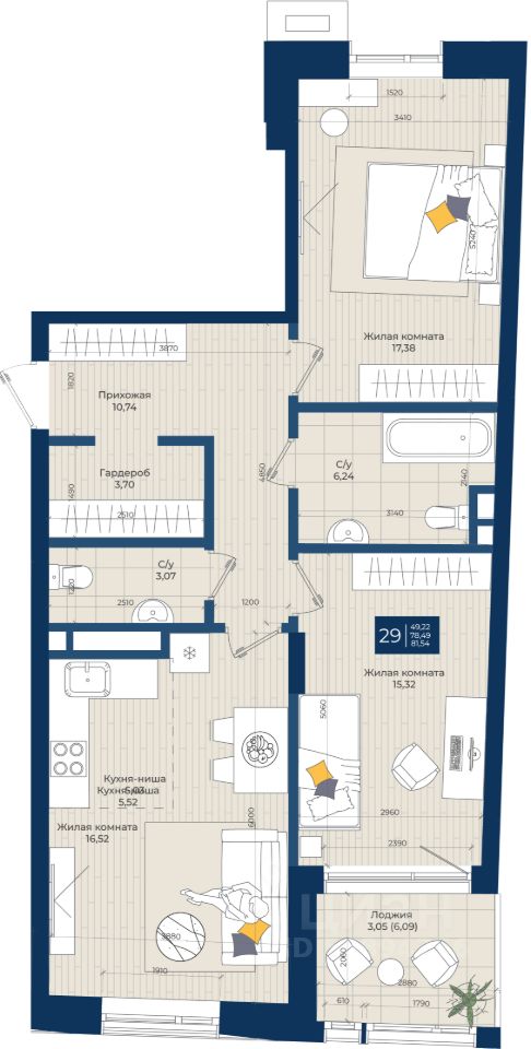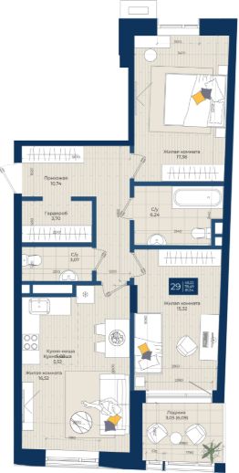 Жилой комплекс "Максат", Квартира 29 общей площадью 81,54 м2 на 4 этаже.