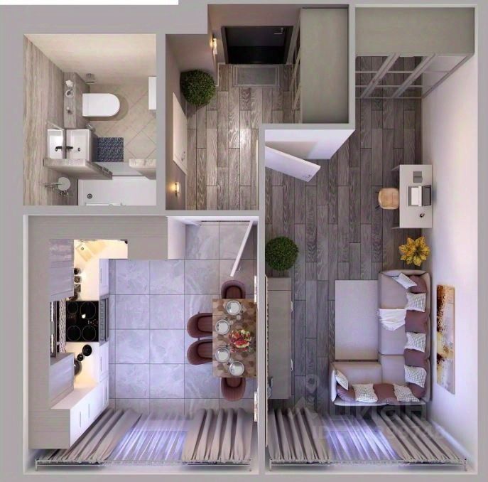Квартира - полноценная "однушка": большая кухня 11,3 кв.м., жилая комната площадью 12 кв.м., совмещенный санузел, лоджия.