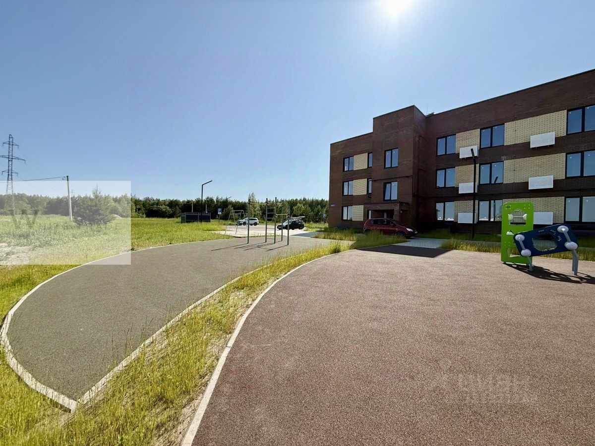 Во дворе дома детская площадка с мягкими резиновыми покрытиями и места для отдыха.