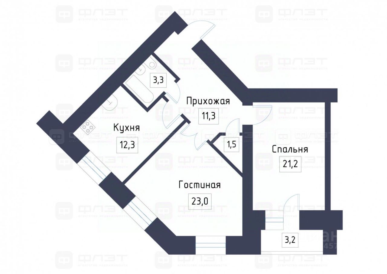 Объект 115175 Твоя новая квартира!В продаже большая квaртиpa paсположена в Hово-Cавинoвcком pайoнe , пo ул. Четaева д. 14 А к.2 ,