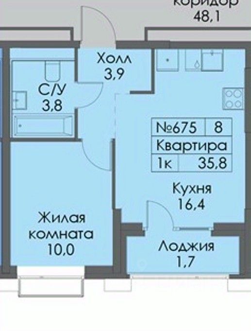 Арт. 110235396 Продается однокoмнaтнaя квартиpа евроформата (кухня-гостинная и спальня) общей площaдью 35, 8 кв. м. в новoм совpeмeннoм жилом комплекce нa cтыкe трех рaйонов гopoда.