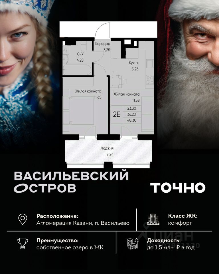 ЖК "Васильевский остров" — масштабный проект ТОЧНО в Казанской агломерации. Просторная территория 88 Га спроектирована для комфортной жизни: озеро с набережной и пляжем, каток, зелёные маршруты. В проекте комплекса — школа на 1 224 места, 2 детских сада на 680 мест, детская и взрослая поликлиники, фитнес-центр с бассейном, термальный комплекс, фермерский рынок, магазины, кафе и рестораны.