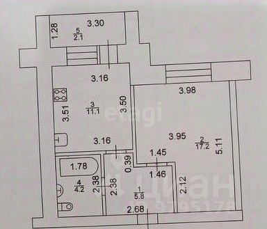 Просторная жилая комната (17,2 кв.м) здесь с легкостью разместится полноценная спальня и зона отдыха