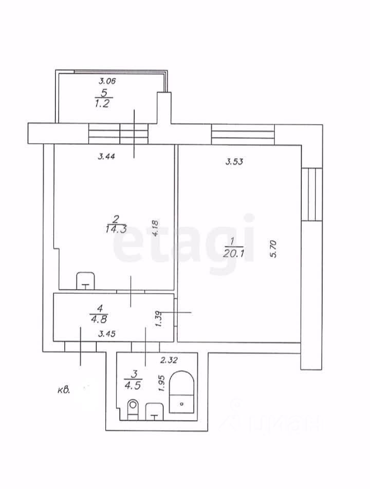Квартира, общей площадью 43,7 м2 с учетом лоджии, на 4 этаже 4х этажного дома (есть технический этаж). Красивый вид из окна.