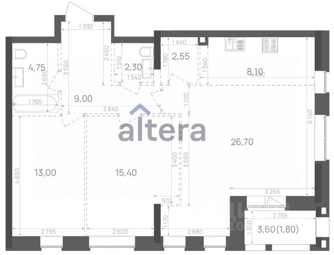 Из предлагаемого застройщиком планировочного решения можно сделать еврочетырехкомнатную квартиру.