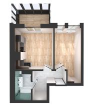 Площадь комнаты позволяет зонировать ее на спальную и гостевую зоны. В проекте функциональная прихожая, чтобы вам было удобно хранить свои вещи.