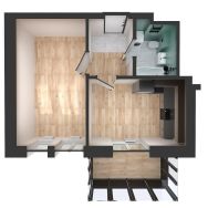 Площадь комнаты позволяет зонировать ее на спальную и гостевую зоны. В проекте функциональная прихожая, чтобы вам было удобно хранить свои вещи.